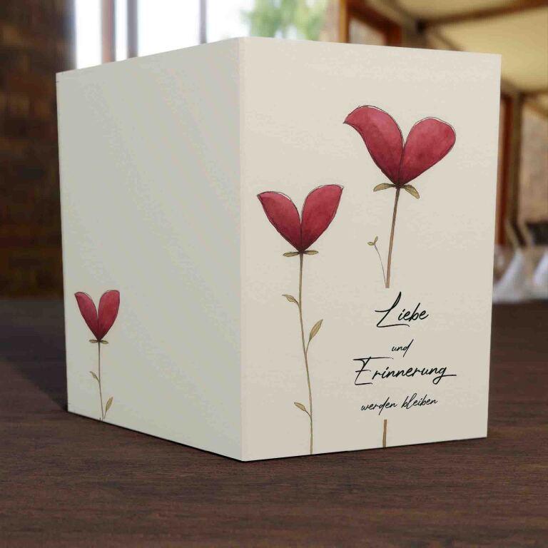 Ergänzt wird das Design durch den Spruch „Liebe und Erinnerungen werden bleiben“.