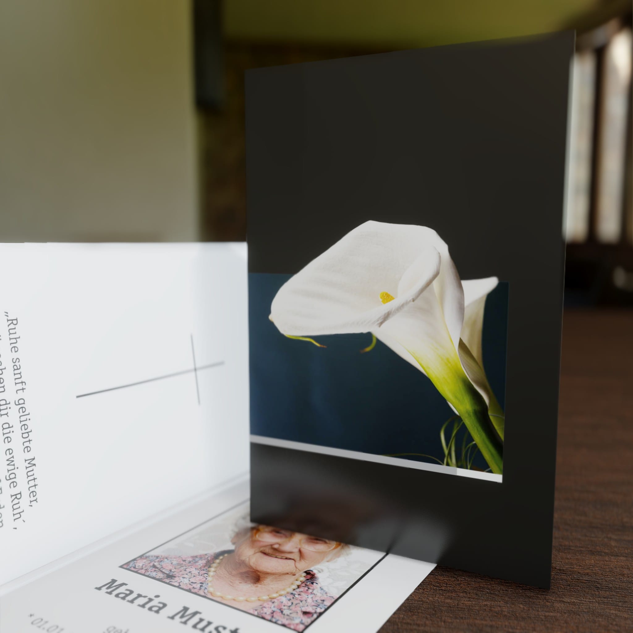 Gestalten Sie die Sterbebilder frei nach Ihren Wünschen um, oder übernehmen Sie einfach unseren Gestaltungsvorschlag.
