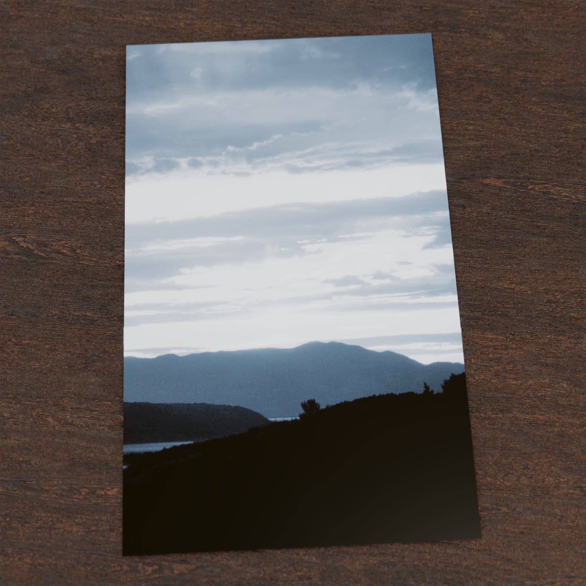 Stilvolles Sterbebild mit dem Motiv Berg Blick.