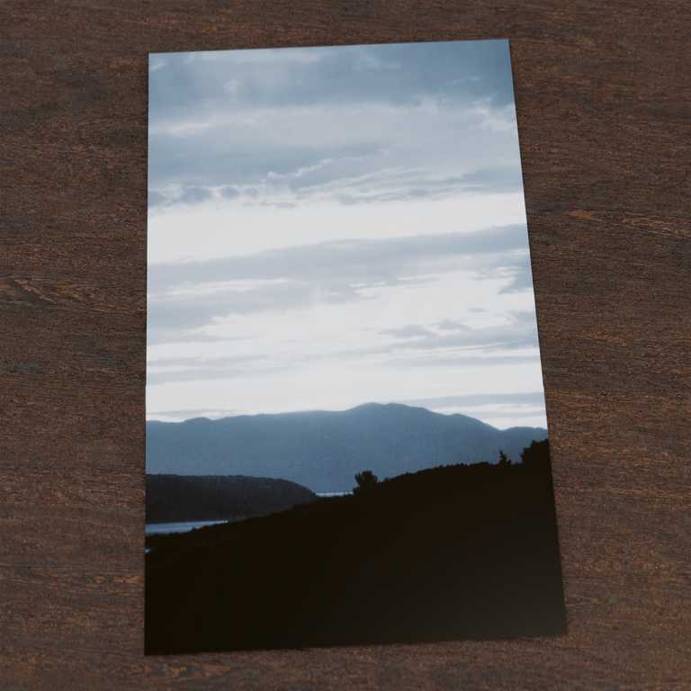 Überreichen Sie ihren Gästen dieses Trauerbild „Berg Blick“