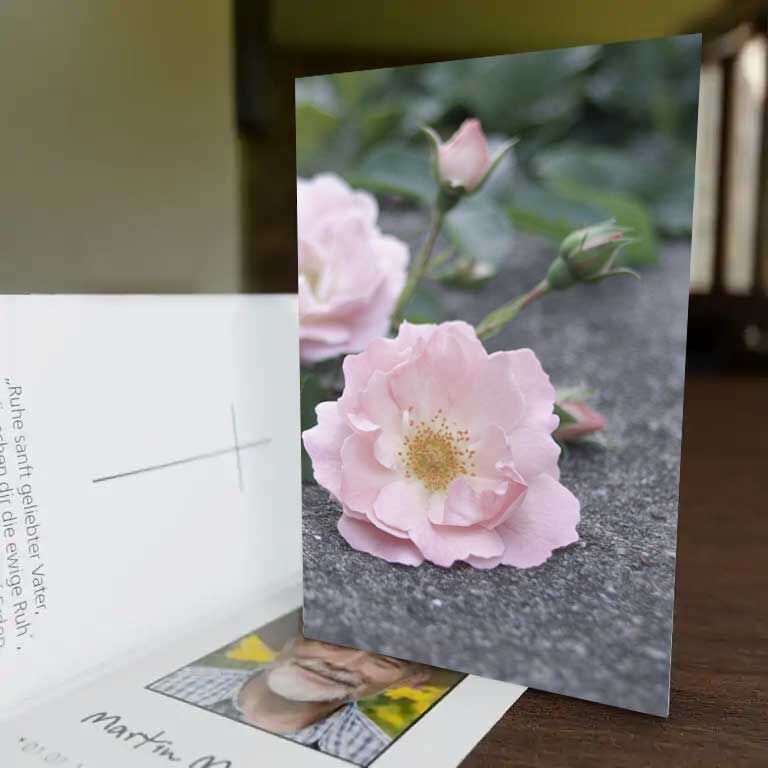 Überreichen Sie ihren Gästen dieses Trauerbild „Rosa Rosen“