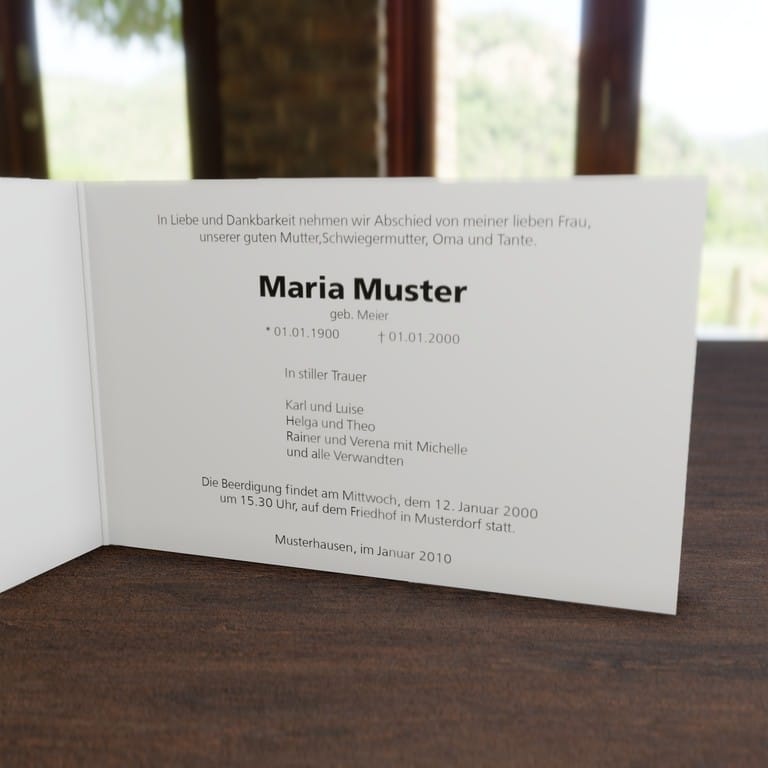 10 Trauerklappkarten 31,10 € inkl. Umschläge und MwSt. zzgl. Versand